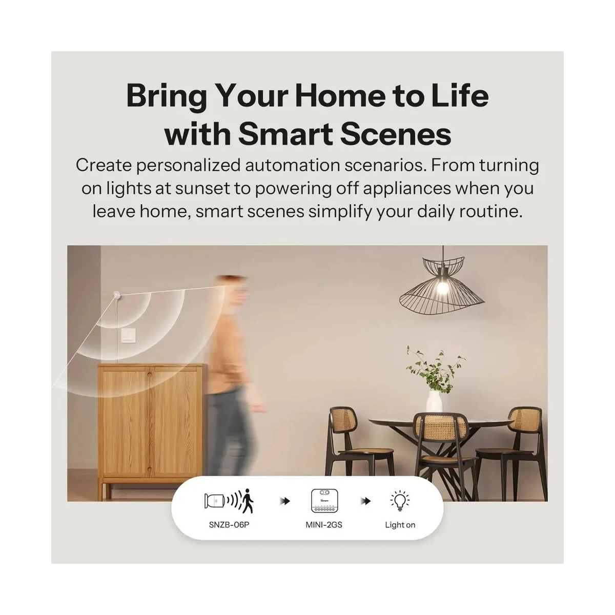 With two independently controlled outputs supporting up to 16A total, detachable relay mode and flexible power-on behaviour, MINI DUO is ideal for upgrading existing circuits without changing your favourite switches. Create smart scenes, schedules and automations, while keeping traditional manual control whenever you need it.