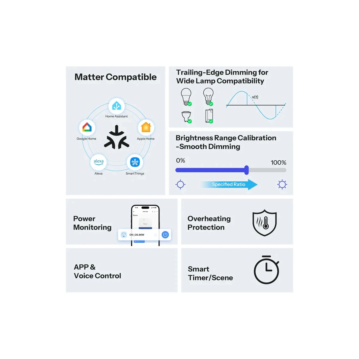 MINI-DIM is built for the Matter smart home ecosystem, so you can integrate it into Apple Home (Siri on iPhone/iPad/Apple Watch), Google Home, or Amazon Alexa for cross-platform scenes and hands-free brightness control. To add it into Matter, you’ll need a compatible Matter Hub / controller—see available smart home hubs if you’re building a unified setup.