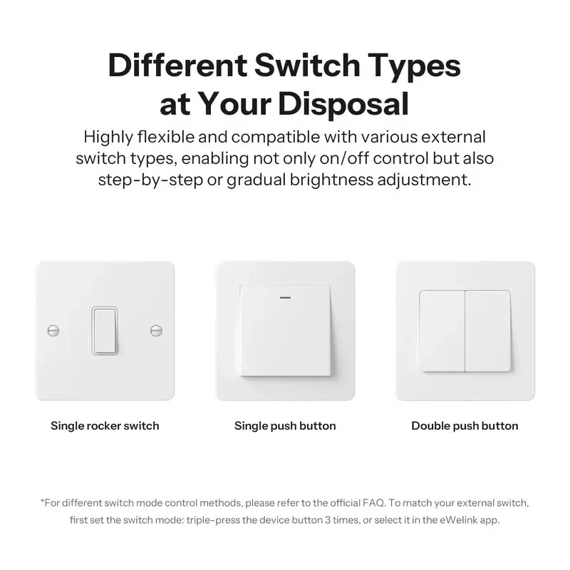Need the same light controlled from different places? MINI-ZBDIM supports two external switches (momentary or rocker), giving flexible control for hallways, staircases, bedrooms, and multi-entry rooms—no constant walking back and forth.