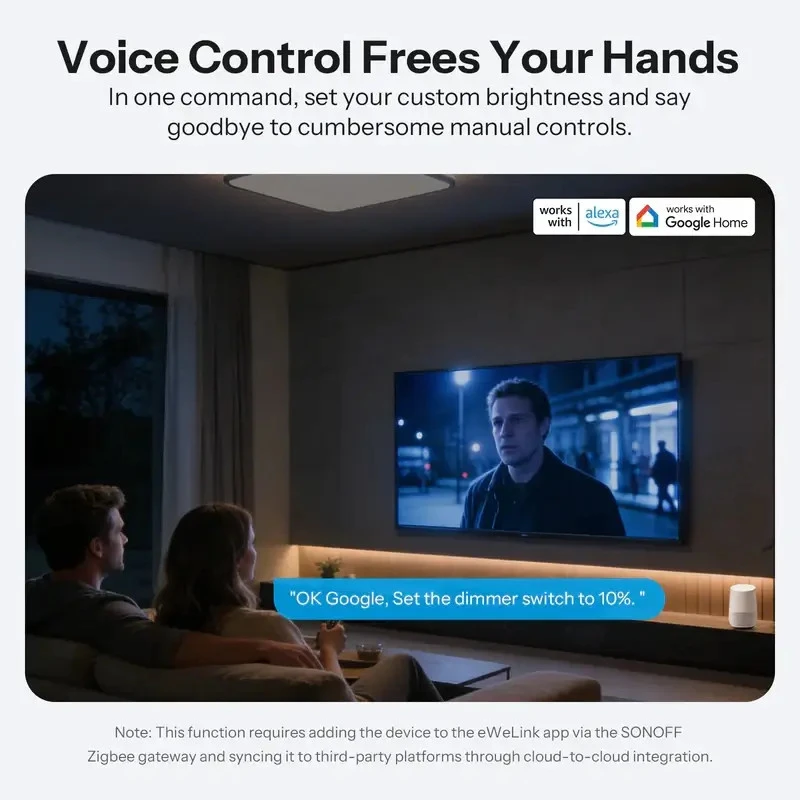 For a consistent experience, combine MINI-ZBDIM with other SONOFF devices from the SONOFF range and create cross-device scenes (lights + sensors + switches) in one automation flow.