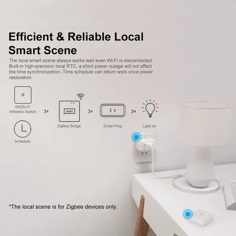 Works with many SONOFF Zigbee devices, such as the ZBMINIR2 smart switch or S60ZB smart plug.